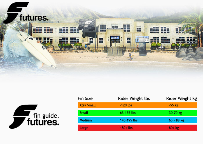 Buyers Guide Future Fin Guide Back to blog Futures Fin Guide Area The more area, the more hold the fin will have. The size of the fin is critical based on the weight of the surfer. The area is the most important number to look at to determine the size of the fin. See fin size chart above. Base The larger the base the more drive the fin will have in bottom turns. Base is an important aspect of area. Increasing the base will make a dramatic difference in the drive you feel out of your bottom turns. If the board feels stiff or hard to turn, putting in a fin with a smaller base. Rake The more rake a fin has the longer and more drawn out turns become. The more upright a fin is, the more pivoty the fin feels. Fins with a larger rake (overhang) will be more stable and fins with less rake are better suited to pocket surfing. Foils V2 Foil Drive in bottom turns, but breaks free in the lip like a flat fin. A V2 Foil is a V. Foil and Flat Foil blend. It takes the best speed generating attributes of the V. (at the base) and transitions into a flat foil in the tip for a controlled release in critical turns. V. foils feel fluid and drivey, and generate more speed during bottom turns. V. Foil Great for getting speed if you are having trouble finding it. Fluid rail to rail transitions. V. Foils are designed to maximize lift with a minimal amount of drag. Fins with this V. Foils will find speed that you did not know was there, or help you get that extra gear to really find drive in your bottom turns. The leading edge of the fin is more rounded accepting more water flow at all angles of attack, and making the fin feel very fluid rail to rail. Flat Foil Flat foiled fins break free sooner, and are better at controlling speed. Often surfers prefer them in fast powerful surf where they do not need to create additional speed Flex Blackstix Techflex Check out our full range of Futures Here including some al merrick and lost models as well as some of our pro models below. Back to blog